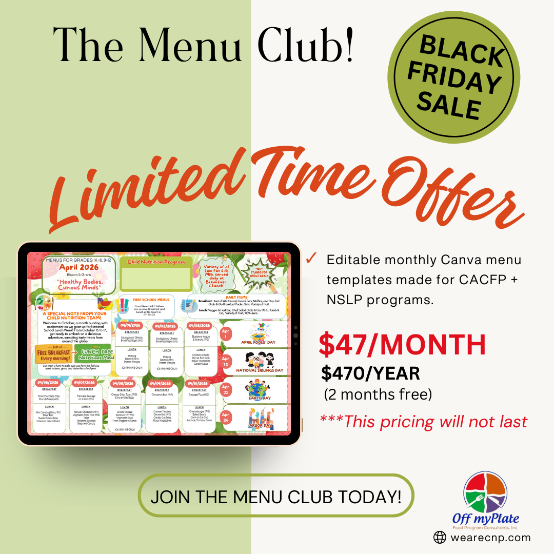 The Menu Club™ gives you everything you need to stay compliant, stay creative, and stay ahead… without staring at a blank menu grid every month.